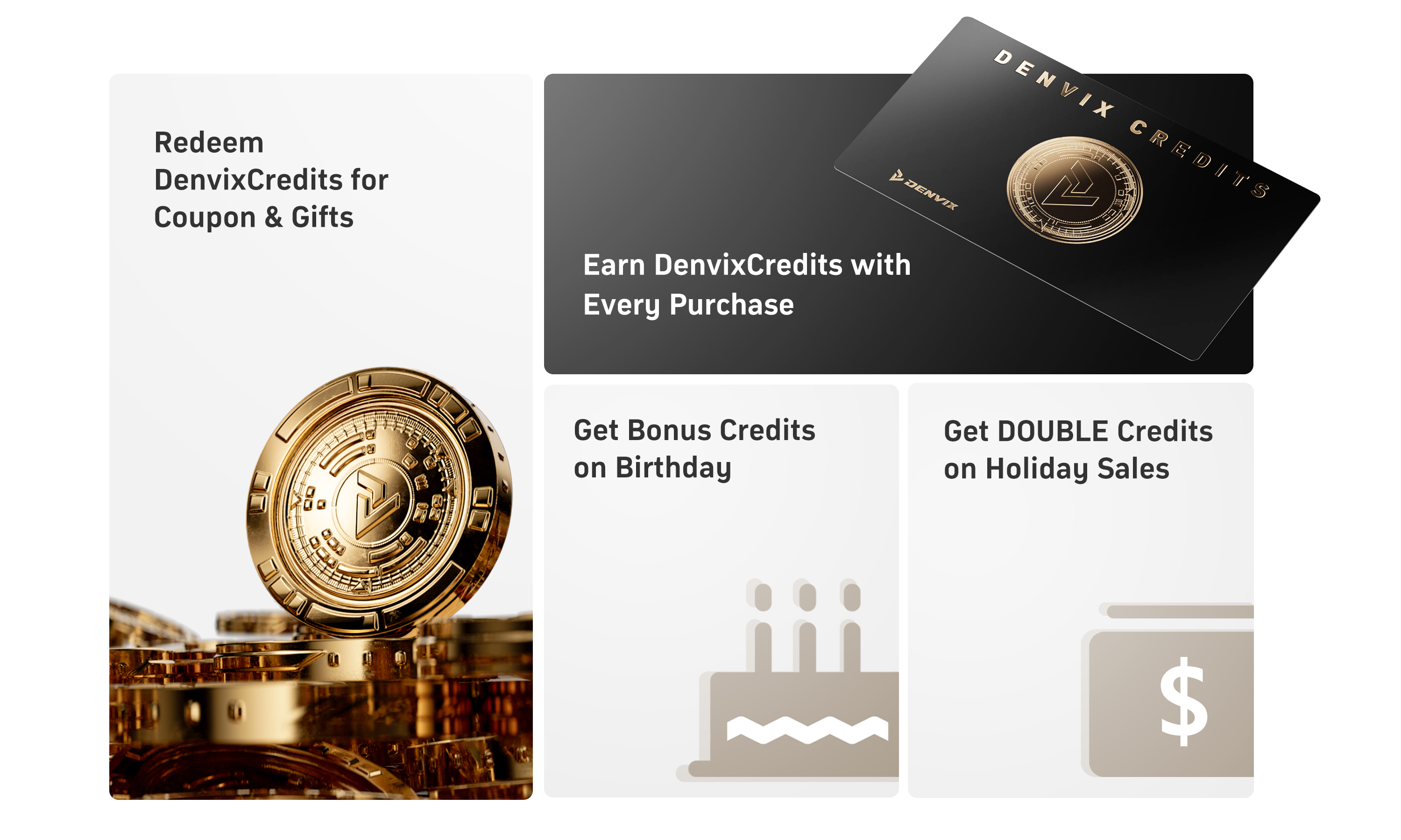 Members can earn DenvixCredits on denvix.com. To earn credits, members must be logged into their Denvix account during purchases or other qualifying actions.