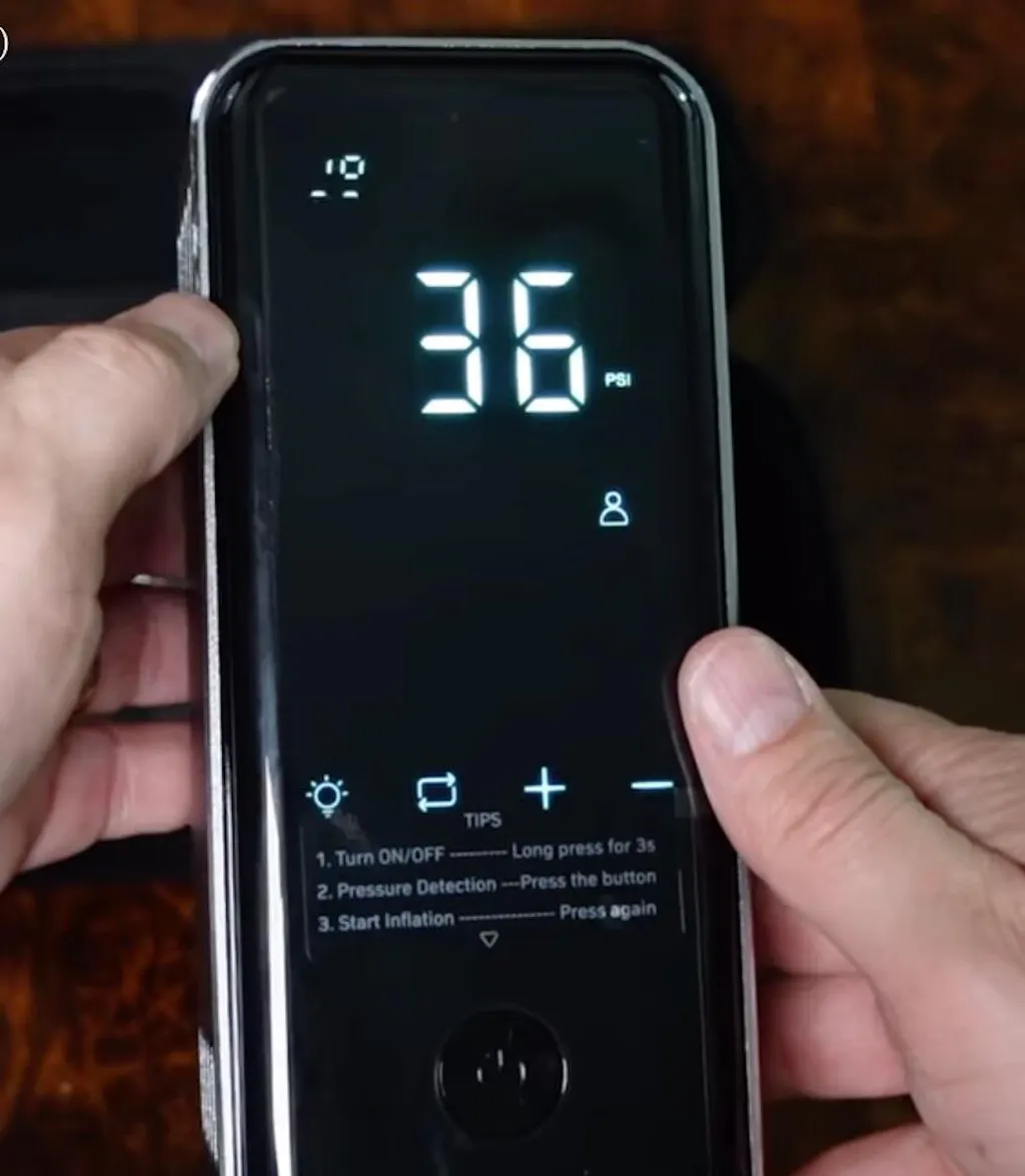 Yes. Just click the power button once and it will show the current pressure. Click it again, and it will start inflating.