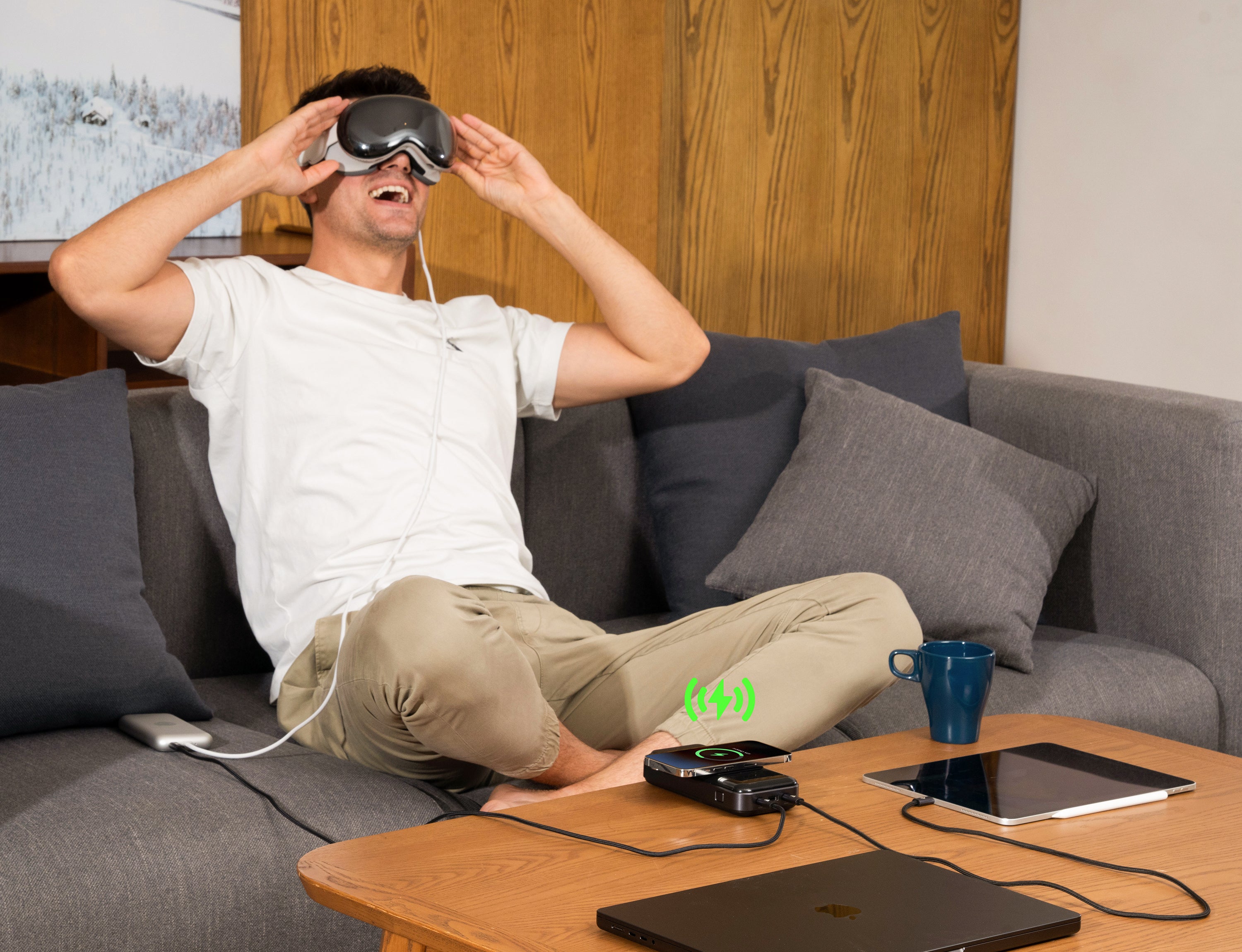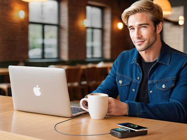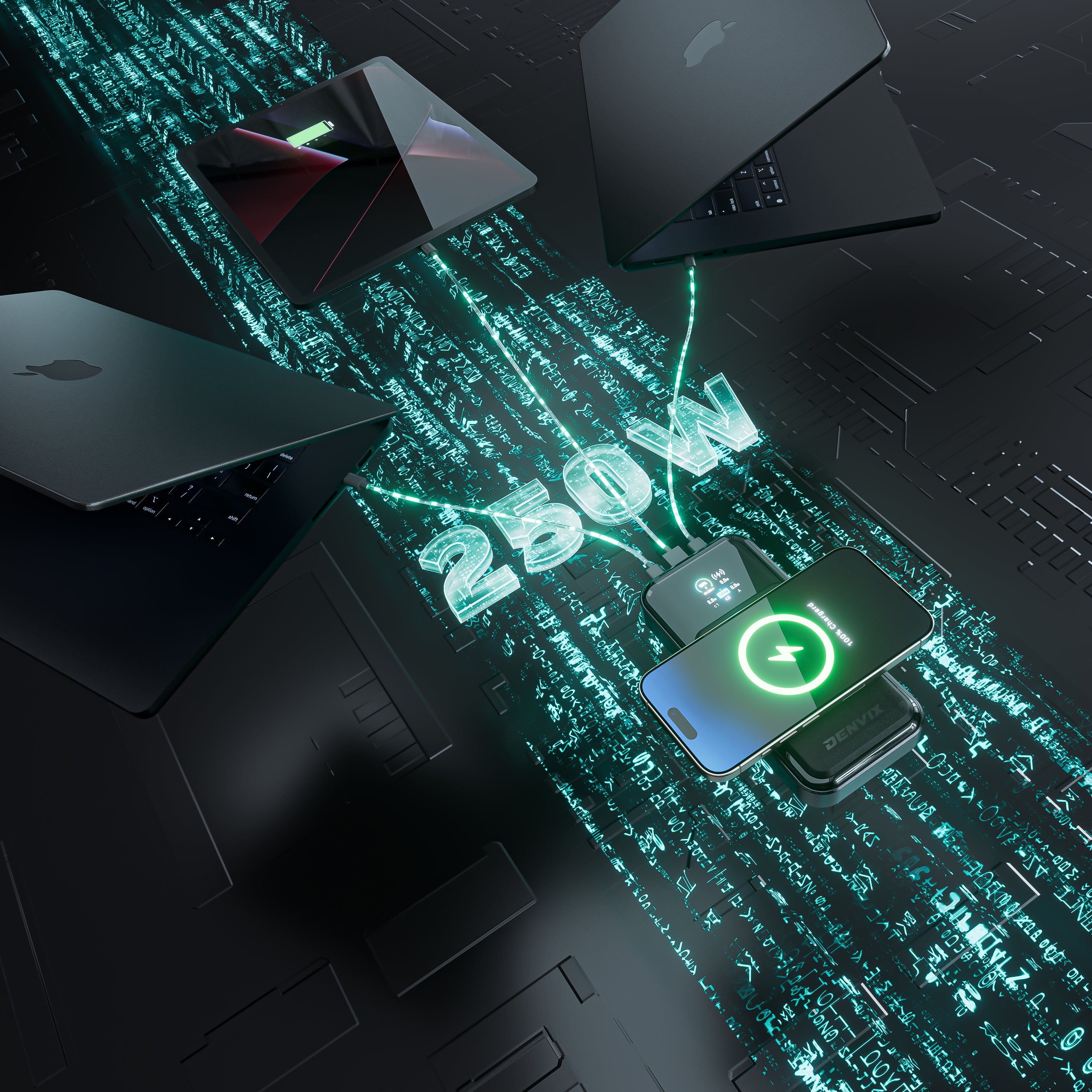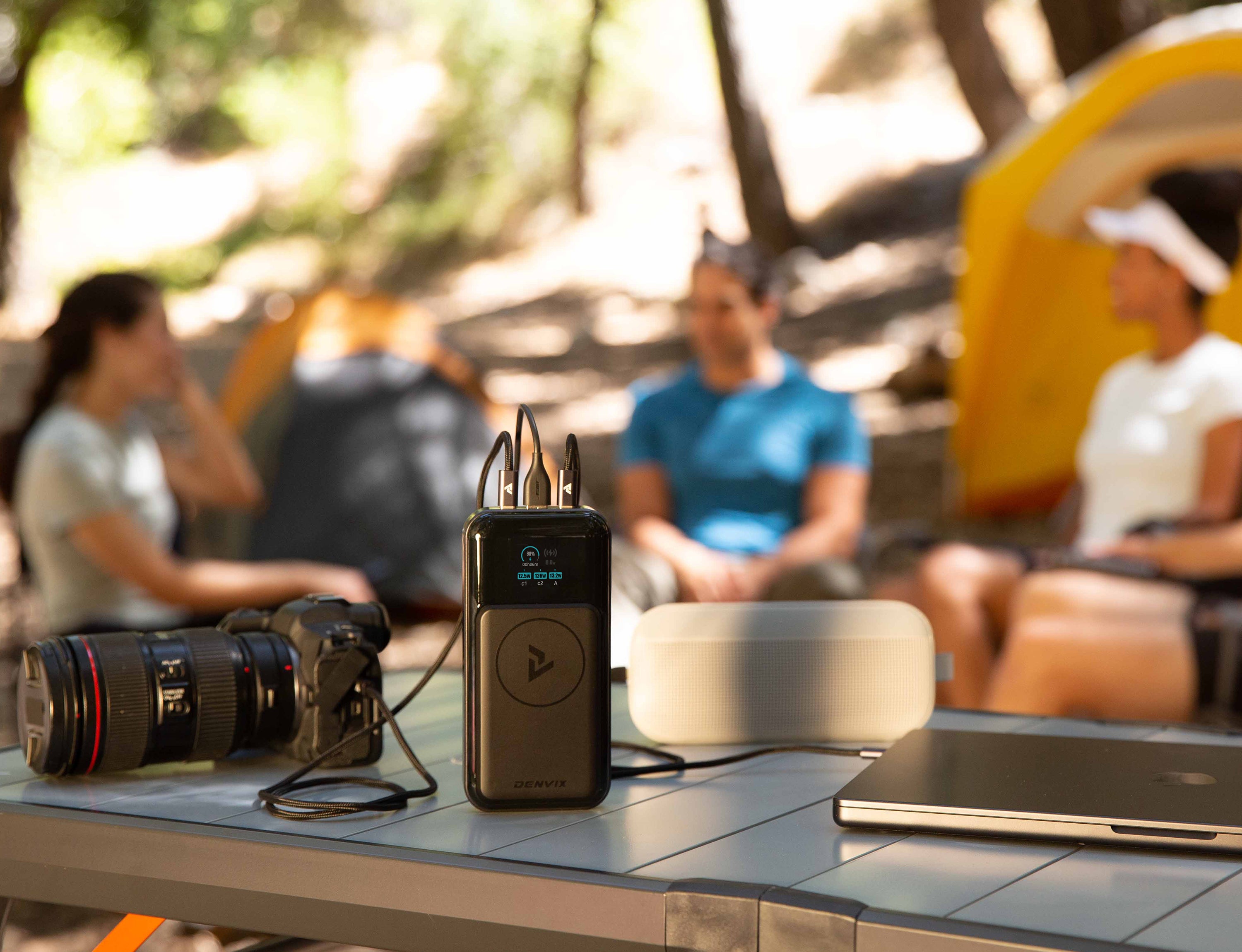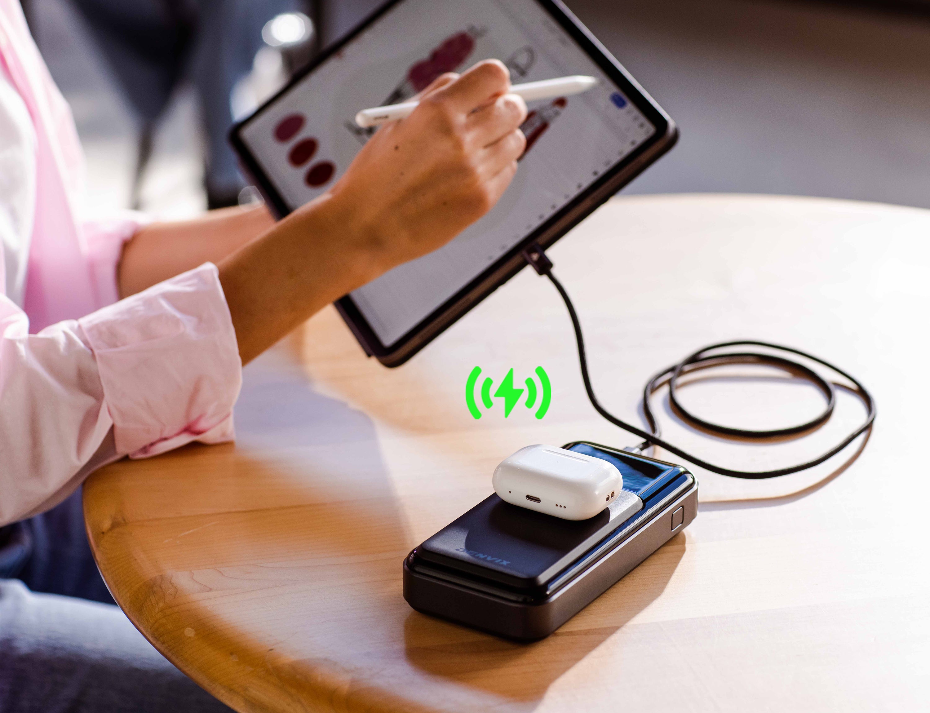 Yes, the power bank has multiple output ports, including USB-C, USB-A, and a wireless charger, allowing you to charge several devices simultaneously without sacrificing speed.