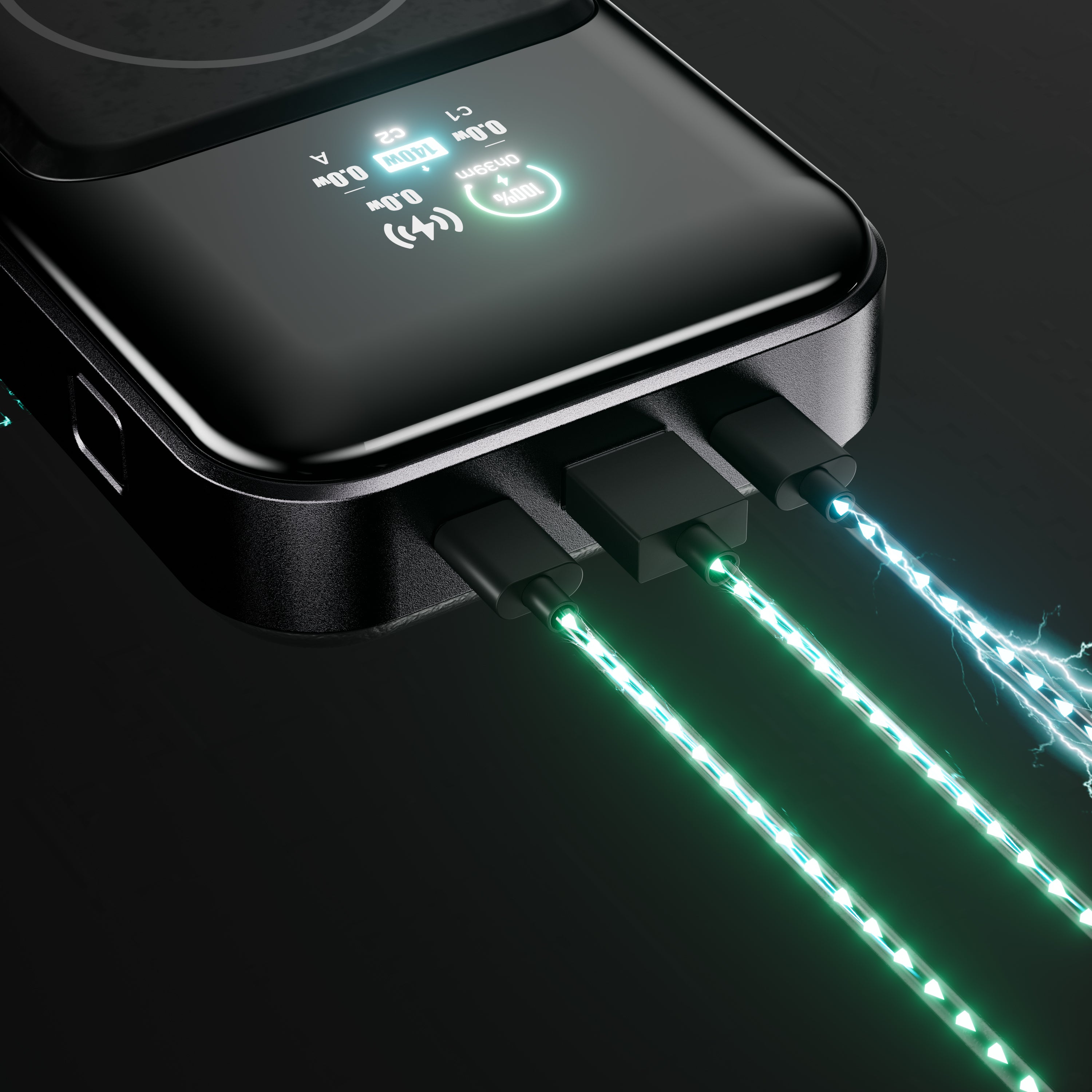 The power bank supports Power Delivery (PD) 3.1 fast charging protocols.